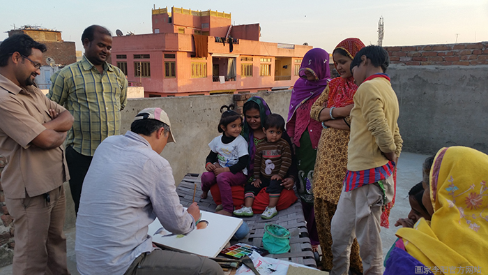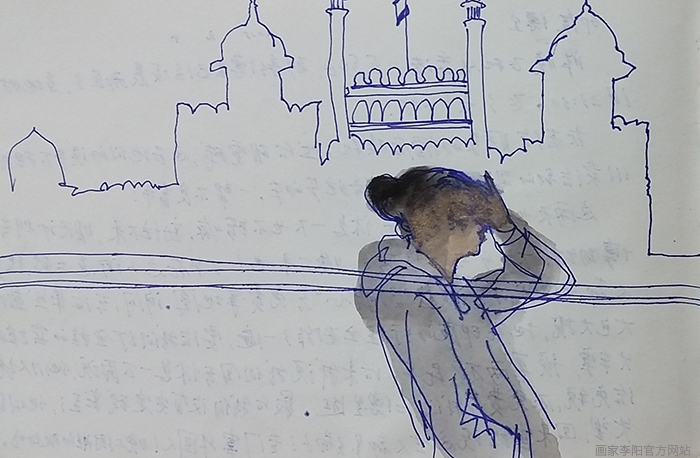 画家李阳在2015年年初前往印度实地考察,为这段行程做准备。