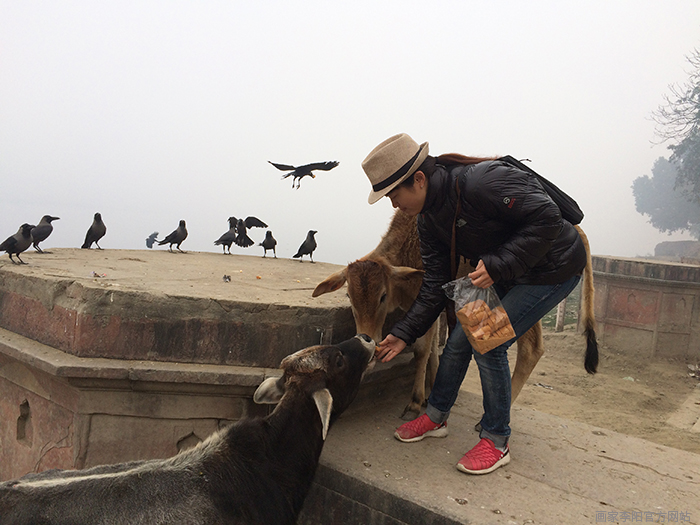 在阿格拉停留了四日,每日清晨,穿过一条猴子们生活的小径,便可来到泰姬陵背后。这里是亚穆纳河河岸,有三座祭台,祭台上站满了等待食物的鸟,人们纷纷来到河岸边献上自己的面包干。在这四天相同的时间里,我们遇到相同的人,他们每日按时到来,他们微笑,充满爱和奉献。