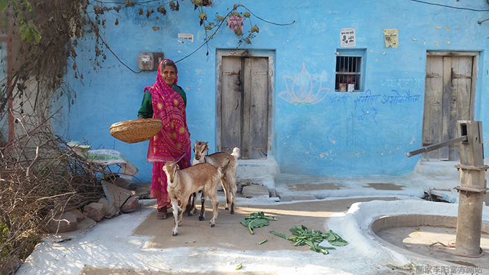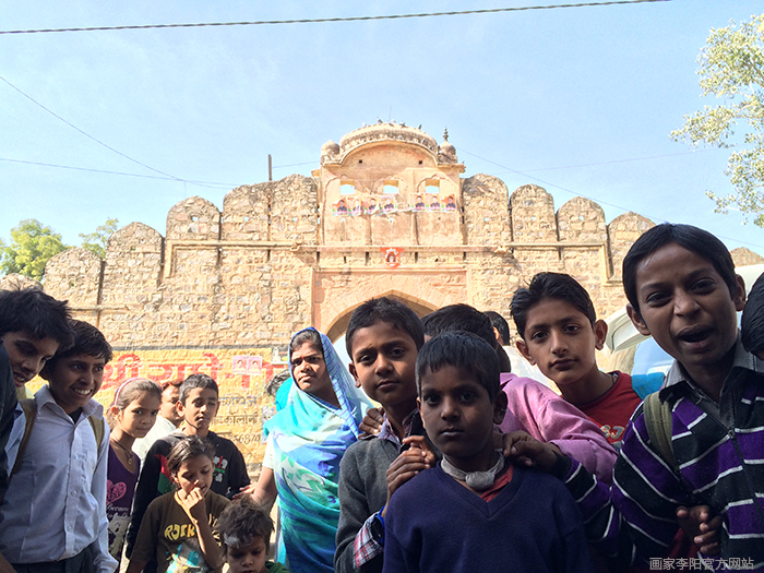 乘车离开斋浦尔粉红城区,偶然发现一座安置于山脚下的美丽村庄,这里充斥着印度艳丽却和谐的色彩。村民热情地邀请我们“快来看看我们可爱的小家!”,这是穆斯林一家,大女儿很活泼,养育了七个小孩。