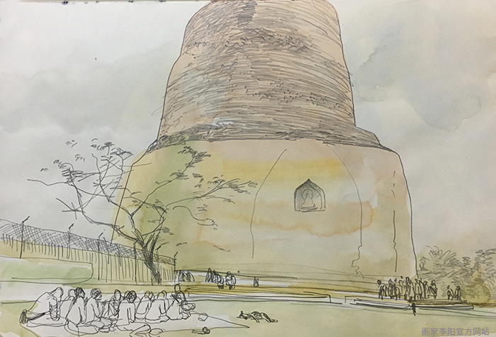 2016年2月19日 瓦拉纳西(多云)今天到了鹿野苑,佛陀初转法轮地。当时佛陀自己觉悟后并没有想到要去普渡众生。但是他最终下定决心,踏上了传道之旅。在鹿野苑佛陀再次见到了曾经一起修行的五个伙伴,面对着五个人佛陀进行了第一次说法,佛教由此拉开了序幕。来自世界各地的佛教徒,以各种形式在这里感受佛陀的教诲,而我们静静地坐在草地上,沐浴着和煦的阳光,打开画本开始写生,用绘画来感受、修行。
