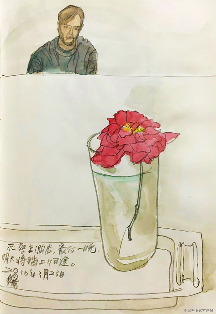 下午天热没法出门,只好在宾馆里游泳、画画。2016年3月23日 桑吉(晴)