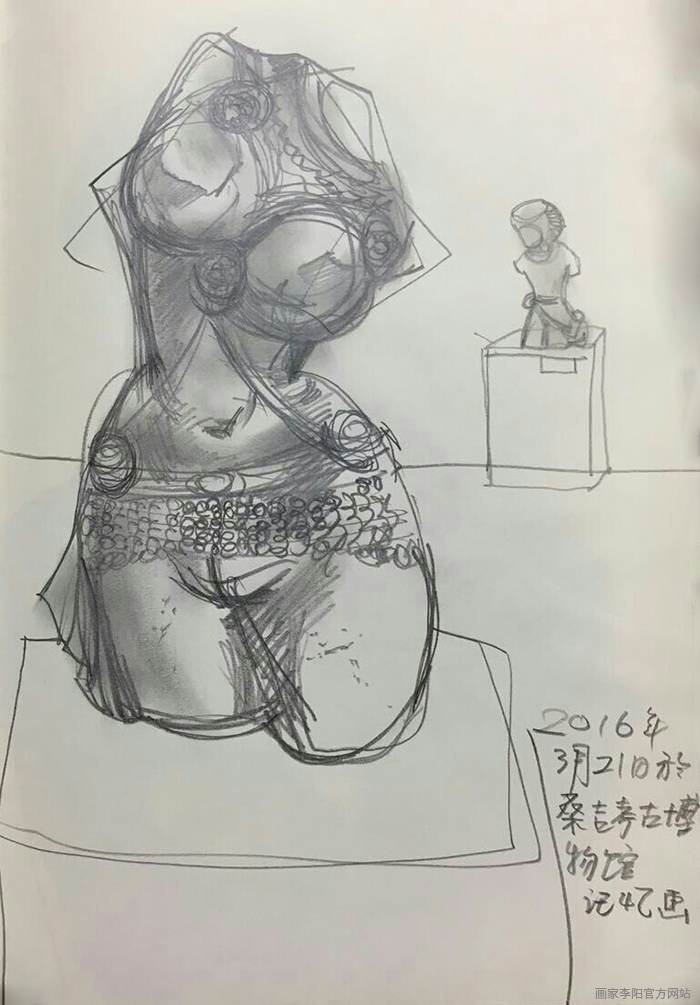 天太热了,下午4点多才出门,先去看博物馆,奇怪的是不让拍照,也不让写生!这在世界上属于首例吧,吵了半天也没用,我就坐在雕塑前面看,然后回到门口记忆着默画,一会儿进去看,一会儿再出来画,连着画了两张,管理人员出来说:“Nice!Nice!”还说大塔下面有很多石雕,你都可以画没有人管,“No problem!”可能他觉得我辛苦啦。