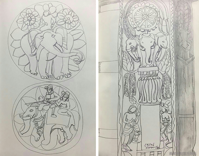 在这里画大象,也是千姿百态。其中一个正面浮雕小象两侧都露出了屁股,违反了透视规律,成了横着长的,简直“妙趣横生”!