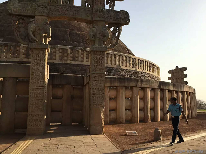 旅行书上说只有在桑吉才能体会真正意义的“佛国”,因为建于阿育王时代(公元前3世纪)著名的桑吉大佛塔就耸立于此。在一座平缓的小山丘上,植物郁郁葱葱,微风轻轻掠过,与印度的任何地方相比,这里的悠古静谧无与伦比。