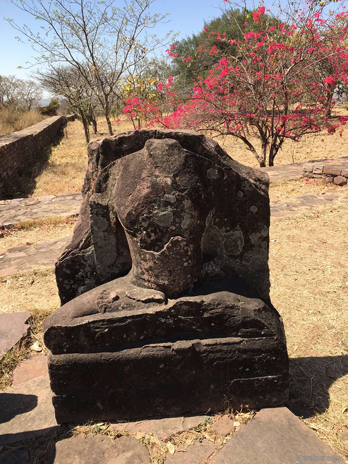 我把桑吉定为最后一站,正是因为在那烂陀玄奘寺看到的那张玄奘西行的大地图,绿线来,桔红色回,结点在桑吉。 从桑吉赶往博帕尔机场,两千卢比,一小时到。过安检后时间尚多,又拿出《大唐西域记》,查阅核对这一段玄奘法师的游学道路。他在环游印度时从南印度向西北移动,其中专门前往中央邦,甚至快到了中央邦最北部的克久拉霍,而且返回环线时走了“8”字路线,似乎在寻找着什么,但记载上始终没有提到大佛塔或克久拉霍,而法师当时记载的一些小国在地图上也无法查找了,唉!真是“斯人已去圣迹难追”啊!