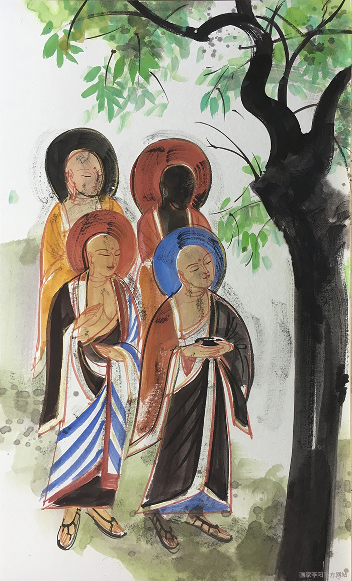 艺术作品是一个国家民族精神的体现,也是文明的重要组成部分。敦煌在南北朝、隋、唐、五代至宋都是丝绸之路上的重镇,连接东西方的交通枢纽。敦煌艺术是因为佛教的传播而诞生的,从早期学习犍陀罗、笈多及龟兹风格,再到中国佛教自己的风格形成经历了一千多年的发展变化。敦煌艺术的表现都是以佛学为基石为骨肉的,这一点极为重要,基于此再去研究敦煌艺术的造型、色彩及线条等内容才会更加全面究竟。李阳老师希望大家通过这次在敦煌的学习、临摹与写生,去慢慢的感悟和消化,并能够创作出体现敦煌艺术魅力的美术作品。
