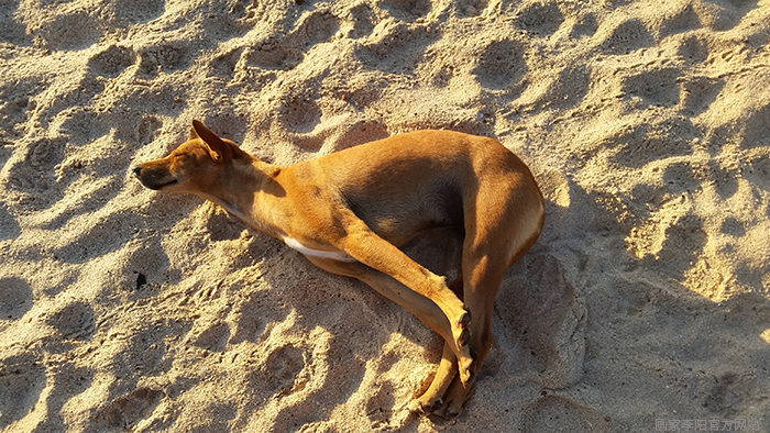 清晨晒太阳的狗